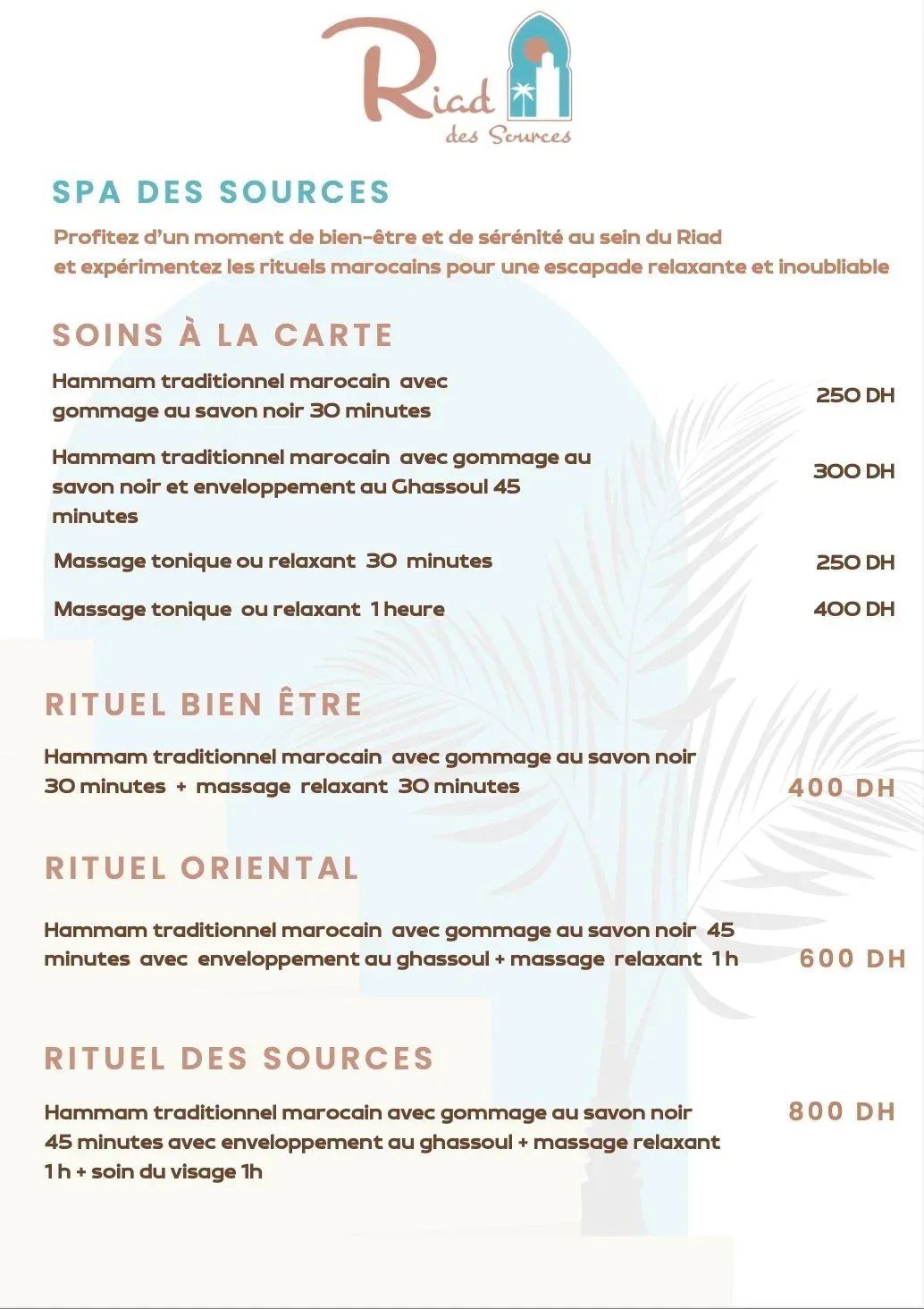 Profitez d’un moment de bien-être et de sérénité au sein du Riad et expérimentez les rituels marocains pour une escapade relaxante.