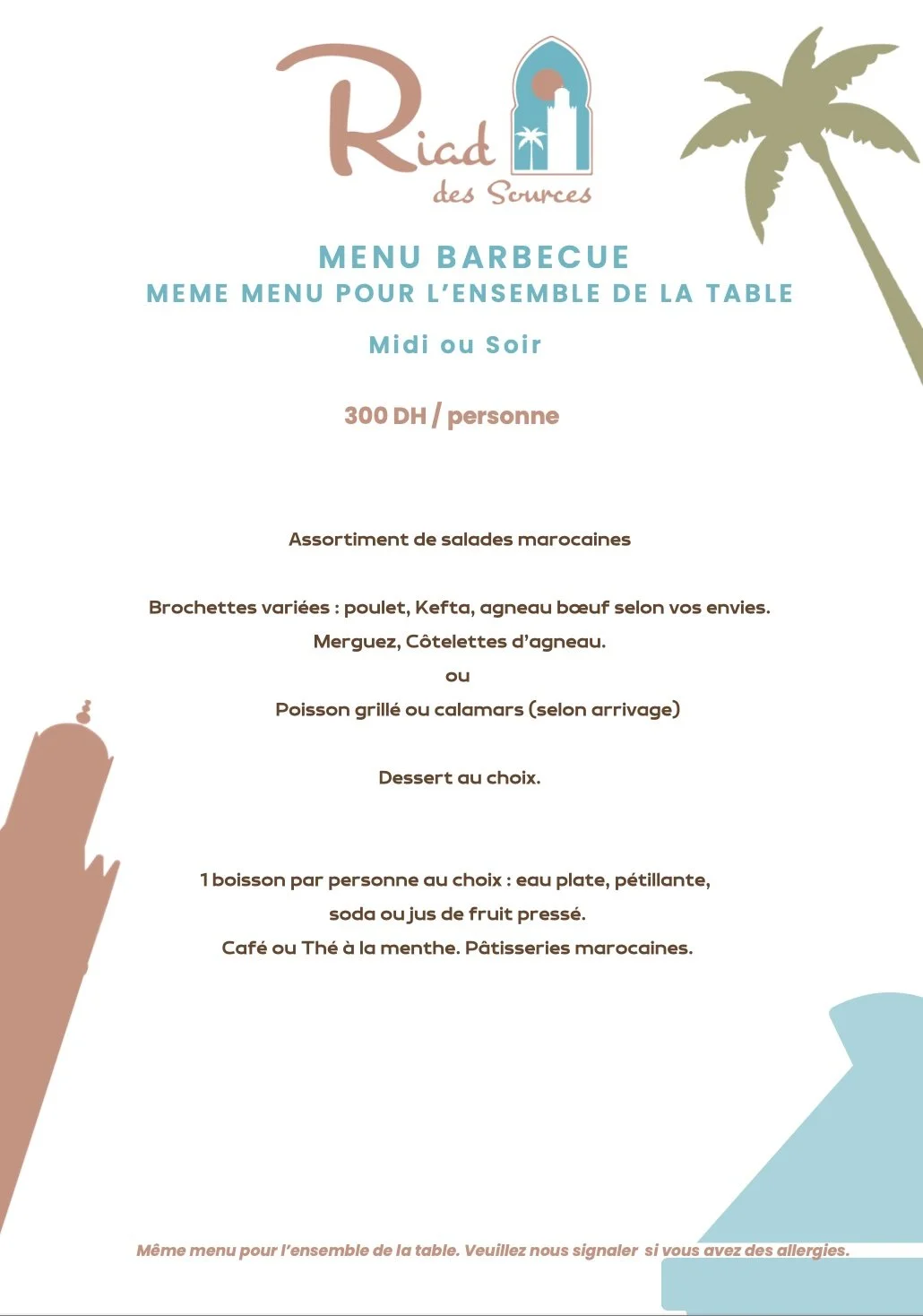 Raffinement et élégance seront au rendez-vous. Si vous souhaitez une expérience Marrakchi avec musiciens Gnawas et danseuse orientale, nous nous ferons un plaisir de vous organiser cette expérience.